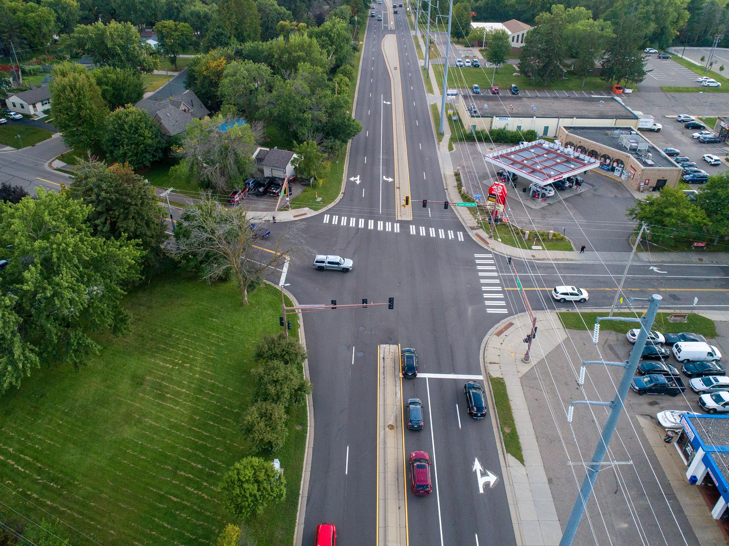 Utility Coordination: The corridor is heavily impacted by utilities, including a sanitary sewer main crossing owned by Metropolitan Council Environmental Services (MCES) and Xcel Energy transmission infrastructure. MSA’s design team successfully avoided major utility conflicts, preserving service continuity and reducing construction risk.